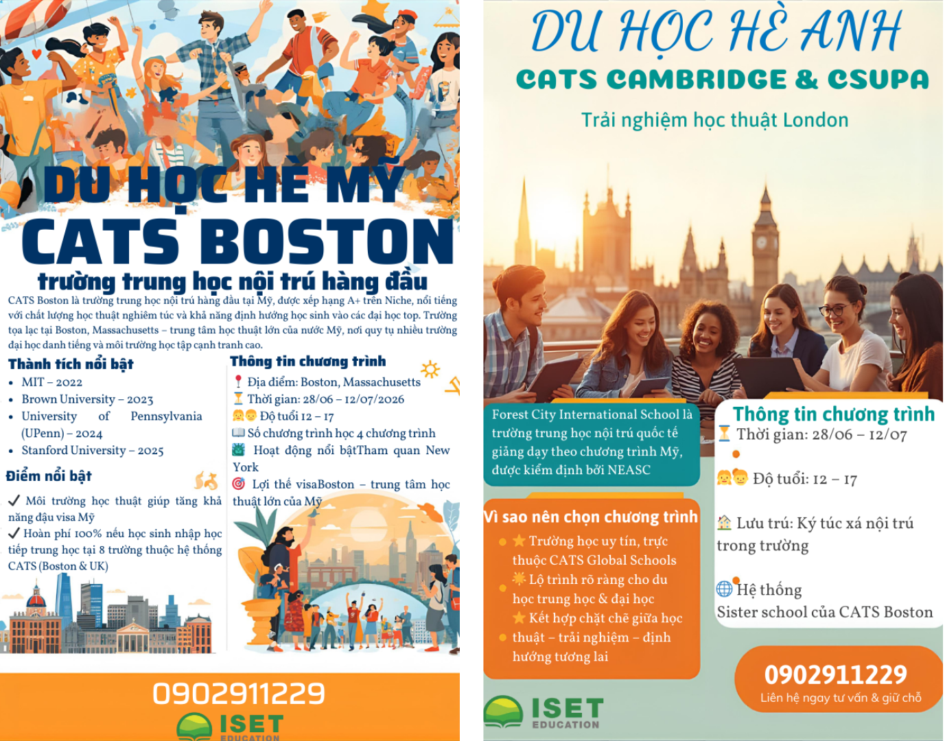 Mùa hè 2026, học sinh Việt Nam trong độ tuổi 12–17 có cơ hội tham gia chương trình du học hè học thuật chuyên sâu tại Mỹ, Anh và khu vực Đông Nam Á. 🌿 Đây là chương trình được tổ chức tại các trường trung học và học viện danh tiếng, trực thuộc hệ thống CATS Global Schools – hệ thống giáo dục quốc tế uy tín, chuyên đào tạo học sinh theo lộ trình vào các đại học hàng đầu thế giới.☘
