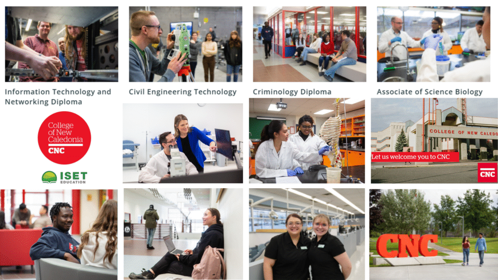 📍 College of New Caledonia (CNC) là một cao đẳng công lập lâu đời tại tỉnh British Columbia (BC), Canada, thành lập từ năm 1969, với sứ mệnh đào tạo thực hành gắn nghề và kiến thức ứng dụng.